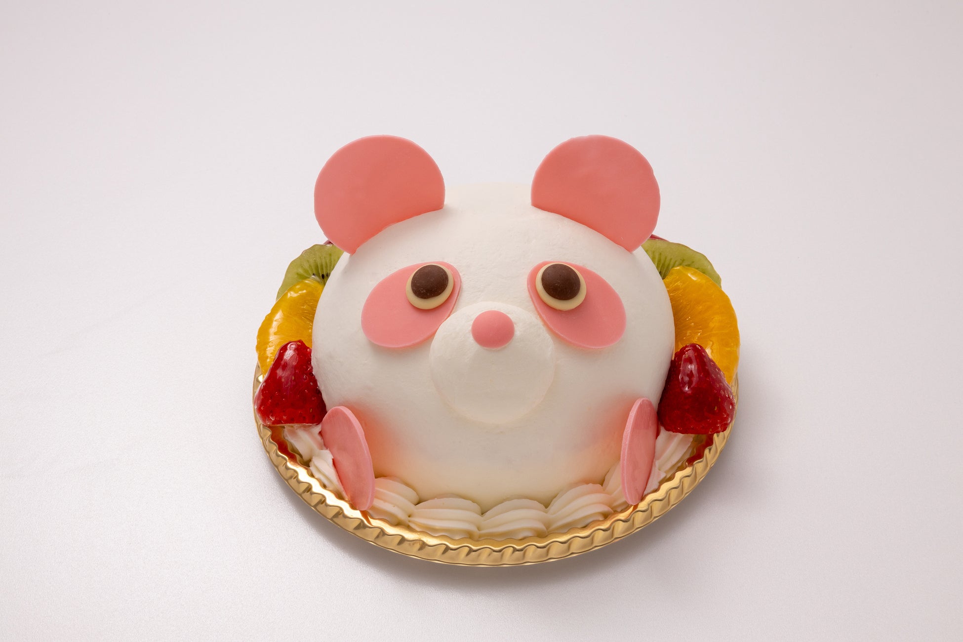 苺とクリームをサンドしたケーキで、かわいい「桃色パンダ」を作りました。