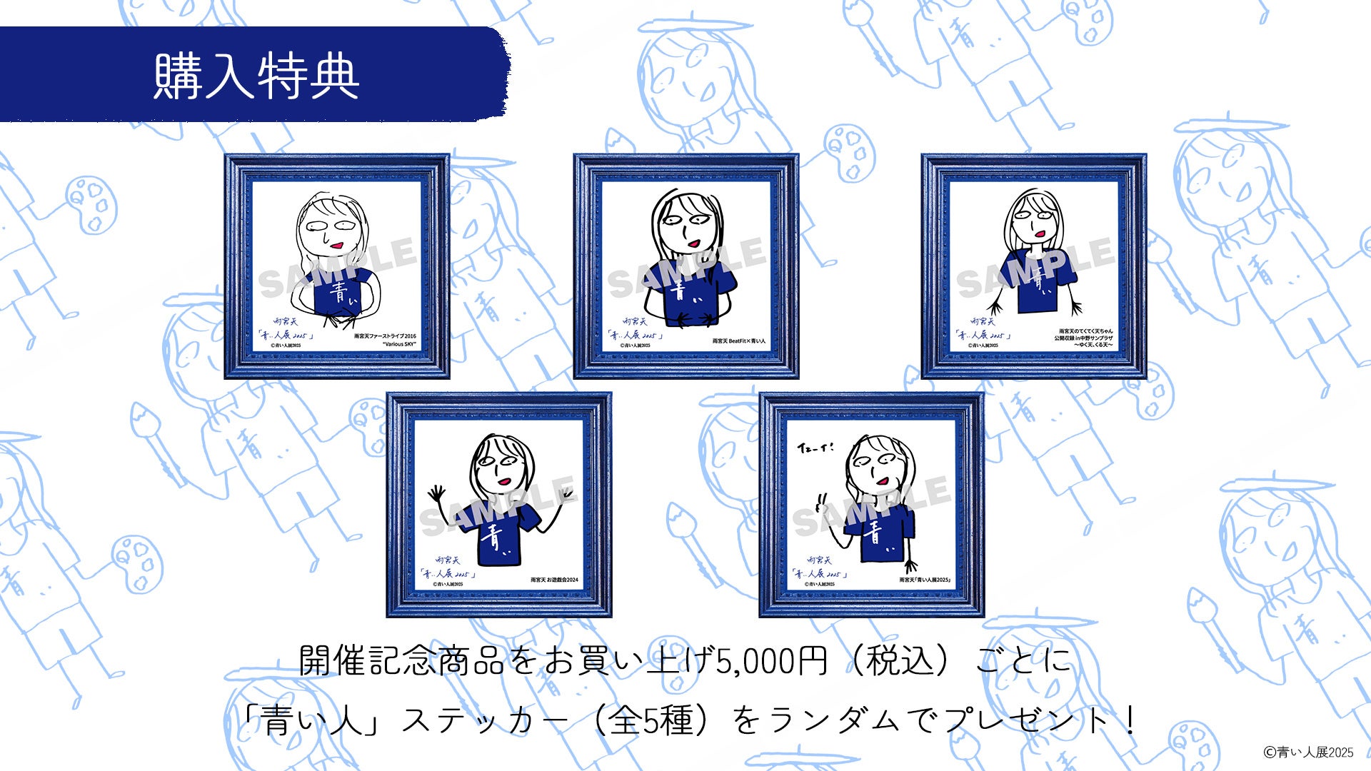 開催記念商品のお買い上げ5,000円(税込)ごとに「青い人」ステッカー(全5種)をランダムでプレゼントいたします。