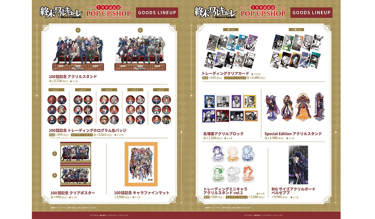 <『終末のワルキューレ』100話記念 POP UP SHOP 商品一覧>