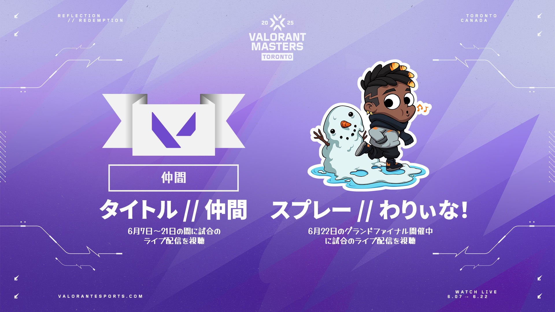 Masters Torontoを視聴して限定Dropsを受け取りましょう!今大会では、配信を視聴するだけでスペシャルなタイトルとスプレーが手に入ります。