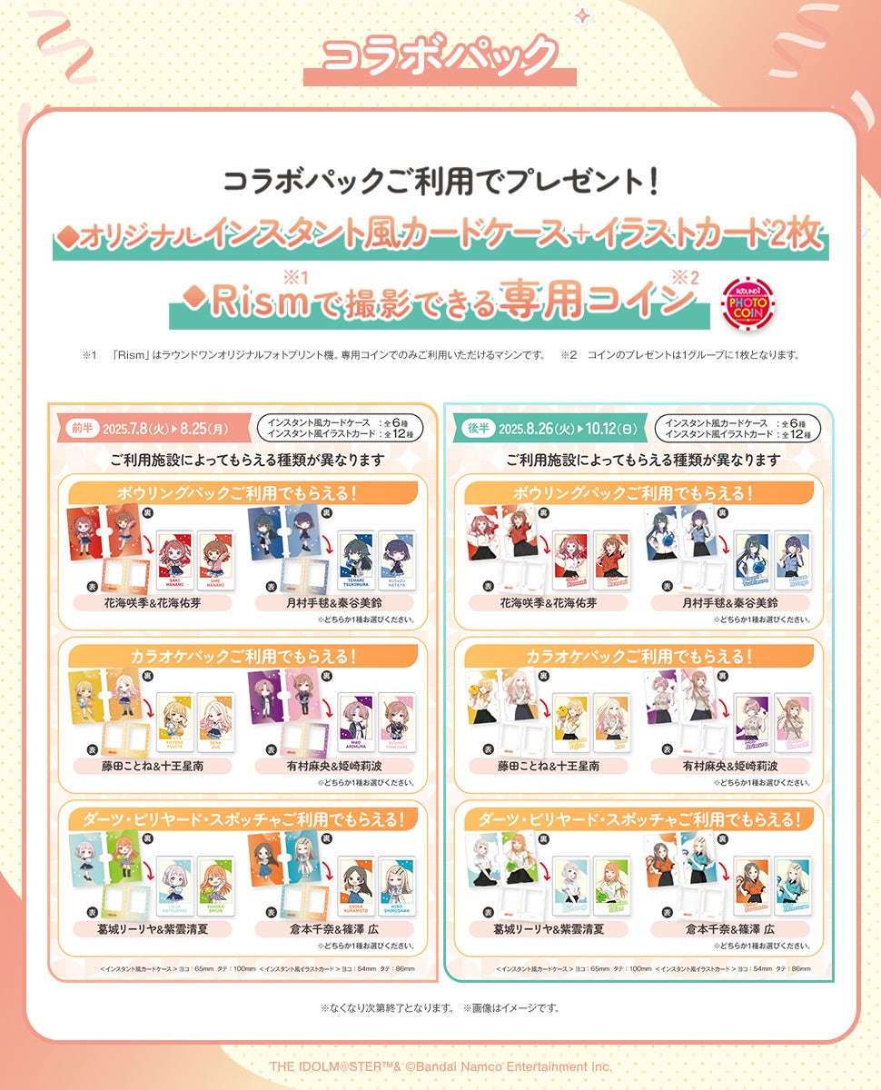 「学園アイドルマスター」と「ROUND1」のコラボキャンペーン開催! 株式会社ラウンドワンジャパン(本社:⼤阪府⼤阪市、代表取締役社長:川口 英嗣)は、この度、2025年7月8日(火)から「学園アイドルマスター」×ROUND1 コラボキャンペーンを実施いたします。