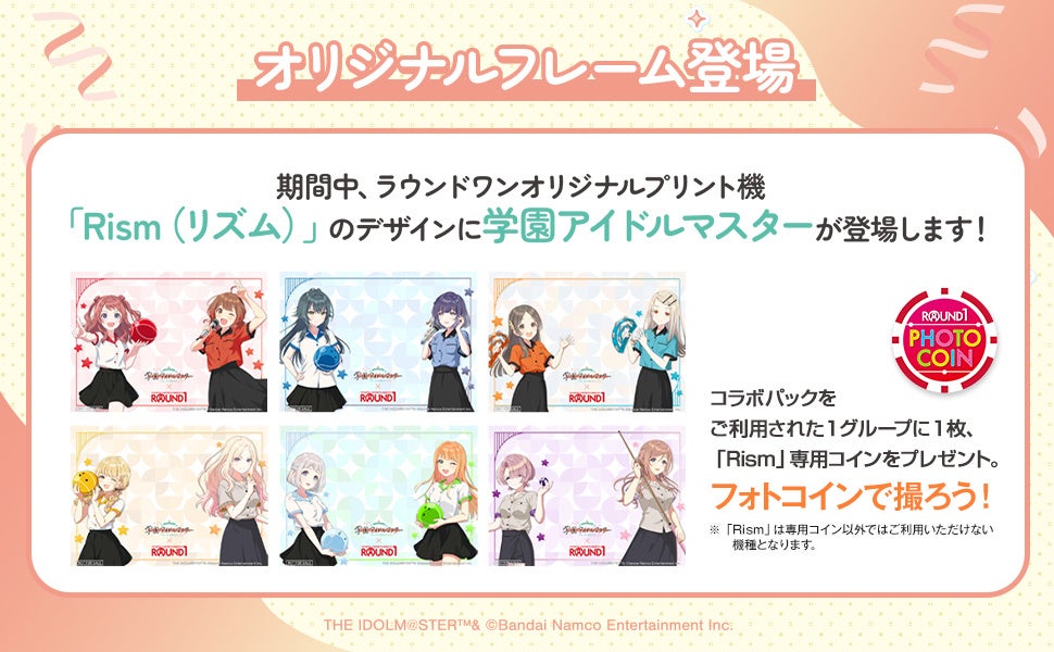 全国97店舗のラウンドワンオリジナルプリント機に「学園アイドルマスター」特別フォトフレームが登場いたします。