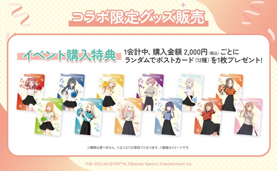 1会計中、購入金額2,000円(税込)ごとに描き下ろしポストカード(12種)をランダムで1枚プレゼントいたします。