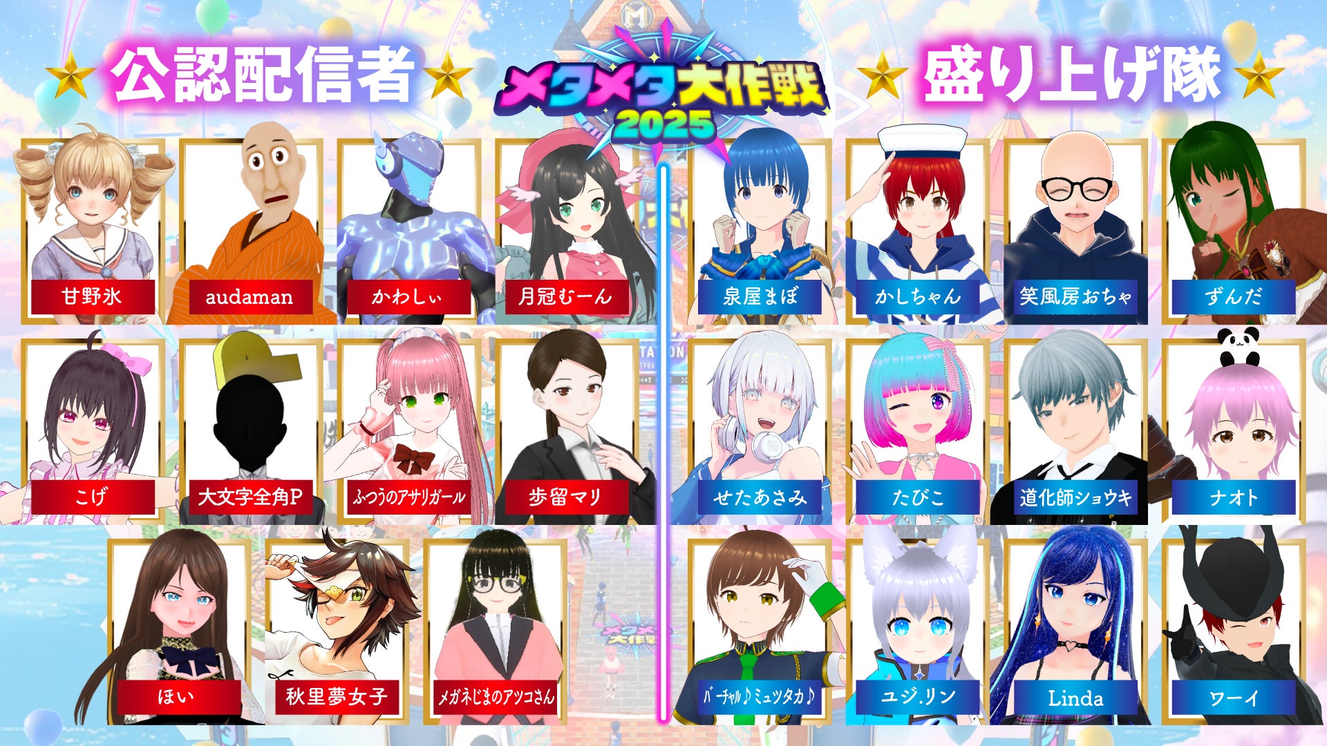 昨年夏に開催され、来場者のべ20万人を突破した史上最大のバーチャル文化祭『メタメタ大作戦』が、この夏パワーアップして帰って来ます!その名も『メタメタ大作戦 2025- 遊びが学びに変わる夏 -』。