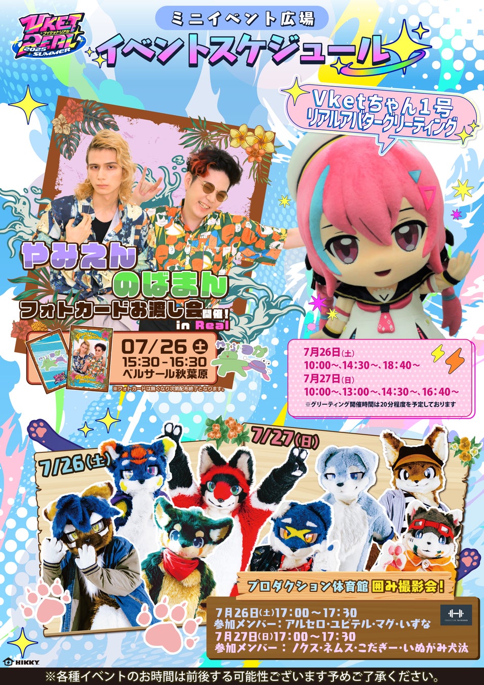 ■ミニイベント広場の「Vketちゃん1号リアルアバター」「やみえん・のばまんお渡し会」「プロダクション体育館」グリーティングスケジュール公開!
