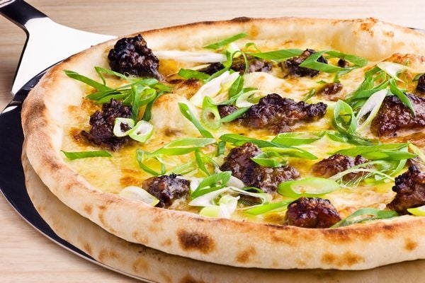 ピリッと香る七味唐辛子を練り込んだ生地に、じっくり煮込んだとろとろの牛すじをたっぷりトッピングしました。