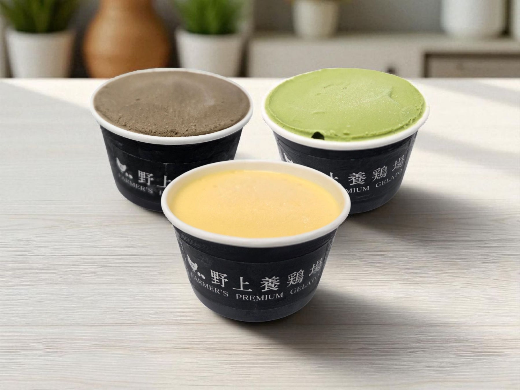 ▲たまご屋さんの濃厚たまごジェラート/抹茶ジェラート/ほうじ茶ジェラート