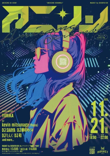 株式会社SHIBUYA109エンタテイメント(本社:東京都渋谷区、代表取締役社長:石川あゆみ)は、東京・渋谷で運営する「MAGNET by SHIBUYA109」の屋上イベントスペース「MAG’s PARK」にて、渋谷スクランブル交差点を眼下に楽しむアニソンDJイベント『Anisong Scramble』(アニソン スクランブル)を2025年11月21日(金)に開催