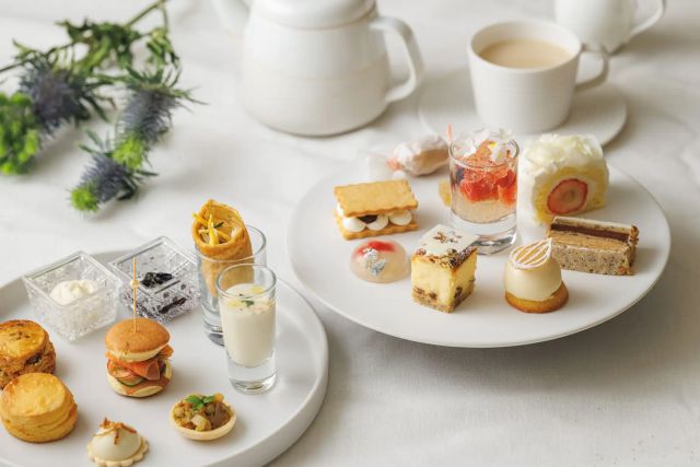 オールデイダイニング「ティーラウンジ佳風」で、季節ごとに装いを変えて提供するアフタヌーンティーセットは、すべてのアイテムがグルテンフリー。目にも楽しいスイーツやセイボリーの数々を、すべて味わっても負担を感じない軽やかさが、幅広い層から支持されています。最新のセットは「白雪のアフタヌーンティー」。白を基調に、和洋のエスプリを融合させたクリエイションです。