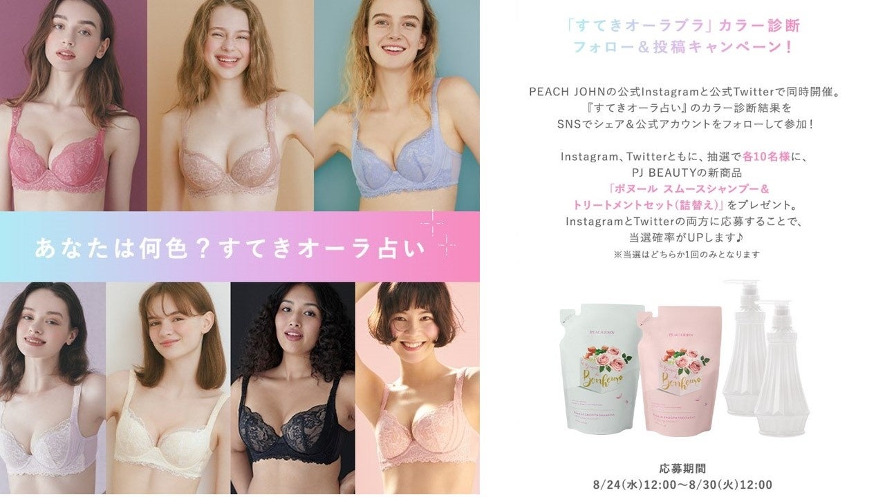 ピーチ・ジョン史上最高レベルのスタイルアップブラ「すてきオーラブラ」に新色が発売。“すてきオーラ占い”で自分のオーラを引き出すカラーを診断できるコンテンツも登場!