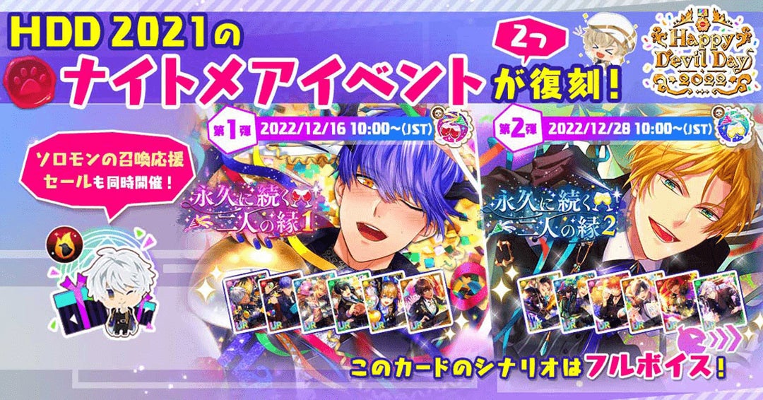 ■超BIGイベント「Happy Devil Day 2022」開催!!メインイベントの「ナイトメア 三界をつなぐパーティーの前に」では第1弾、第2弾を合せると、ナイトメア(ガチャ)がなんと最大200連無料に!他にも限定イベント多数実施