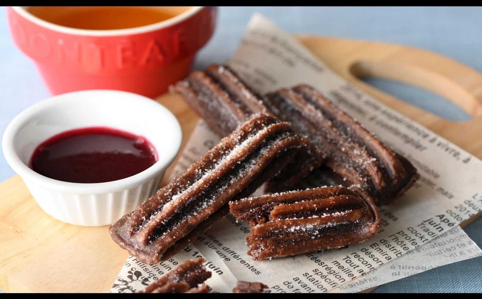 ほんのりビターなチョコ風味の『チョコチュロス』は、カリモチ食感で、揚げたてをお楽しみいただけます!
