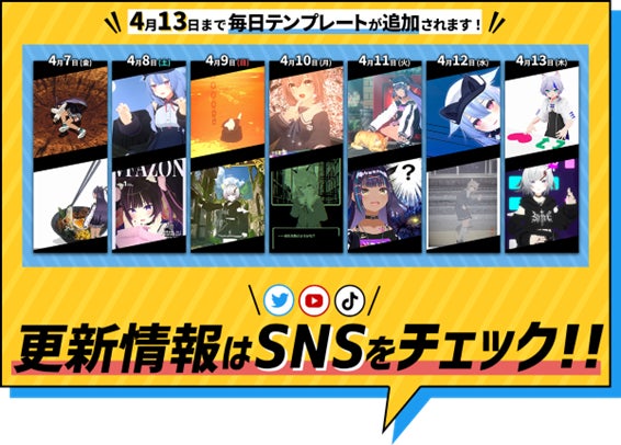 さらに、今回は前回のテンプレートの一部に加えて新たなテンプレートが加わっているほか、4月7日~4月13日のあいだ毎日、テンプレートが2種ずつ追加されます。