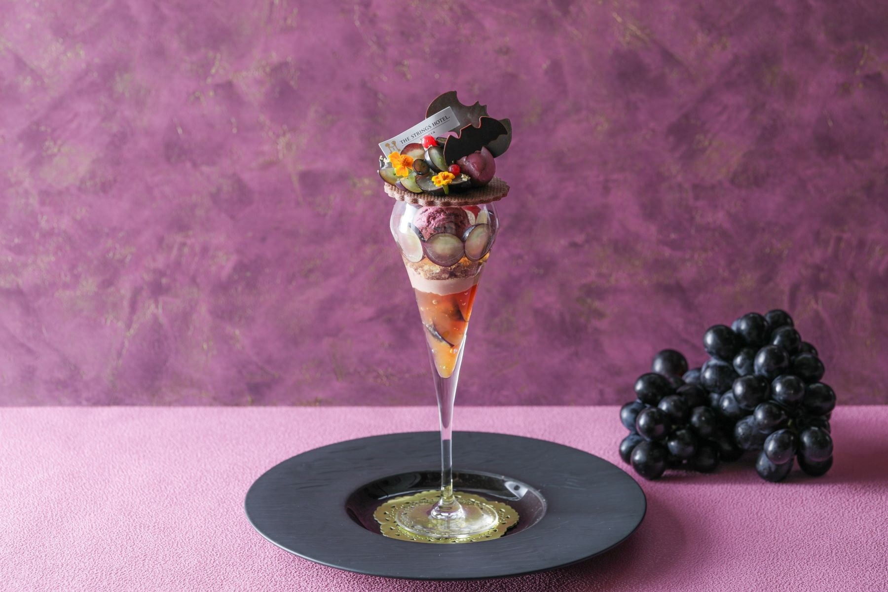 まるで仮装!?ハロウィンの時期にはパープルカラーのパフェに様変わり!「大人のご褒美パフェ~Shine Muscat~&~Halloween Grape~」秋を満喫する2種のご褒美パフェを同時販売