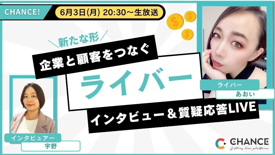 ライブ配信アプリCHANCE!が6月3日~21日の3週間「『共創』応援WEEK」を開催! 「プロジェクト立ち上げ」「ライブ配信」「コメント」で最大20,000CP(チャンスポイント)プレゼント!