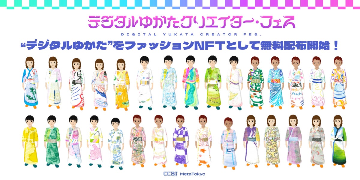 東京都及び公益財団法人東京都歴史文化財団 アーツカウンシル東京が運営するシビック・クリエイティブ・ベース東京[CCBT]は、Web3技術を活用して、メタバース内の“グローバル文化都市”開発を行うMetaTokyo株式会社との事業連携のもと、「デジタルゆかたクリエイター・フェス」を開催しています。2024年3月、「ゆかた」をデザインするクリエイティブイベントを開催し、子供から大人まで様々な方によるクリエイティビティが溢れる、200以上のデザインが集まり、4月から2ヶ月間に渡る投票イベントにより上位30デザインが選出されました。