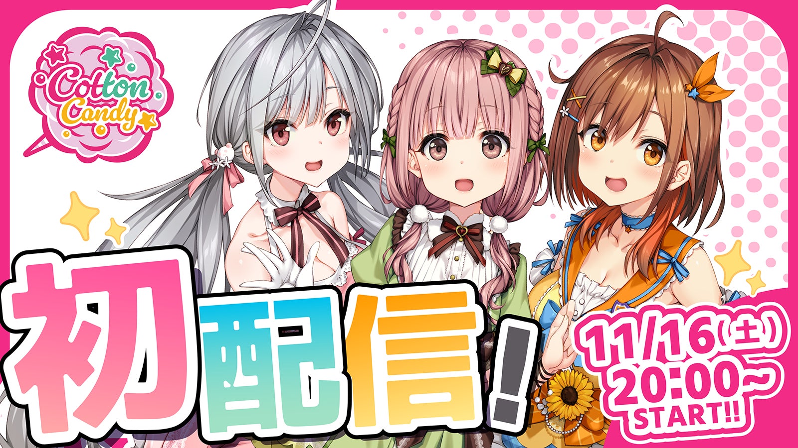 3人組バーチャルアイドル「CottonCandy」デビュー!2024年11月16日(土)より活動開始! ティザー映像は11月15日(金)オフィシャルYouTubeにて公開!