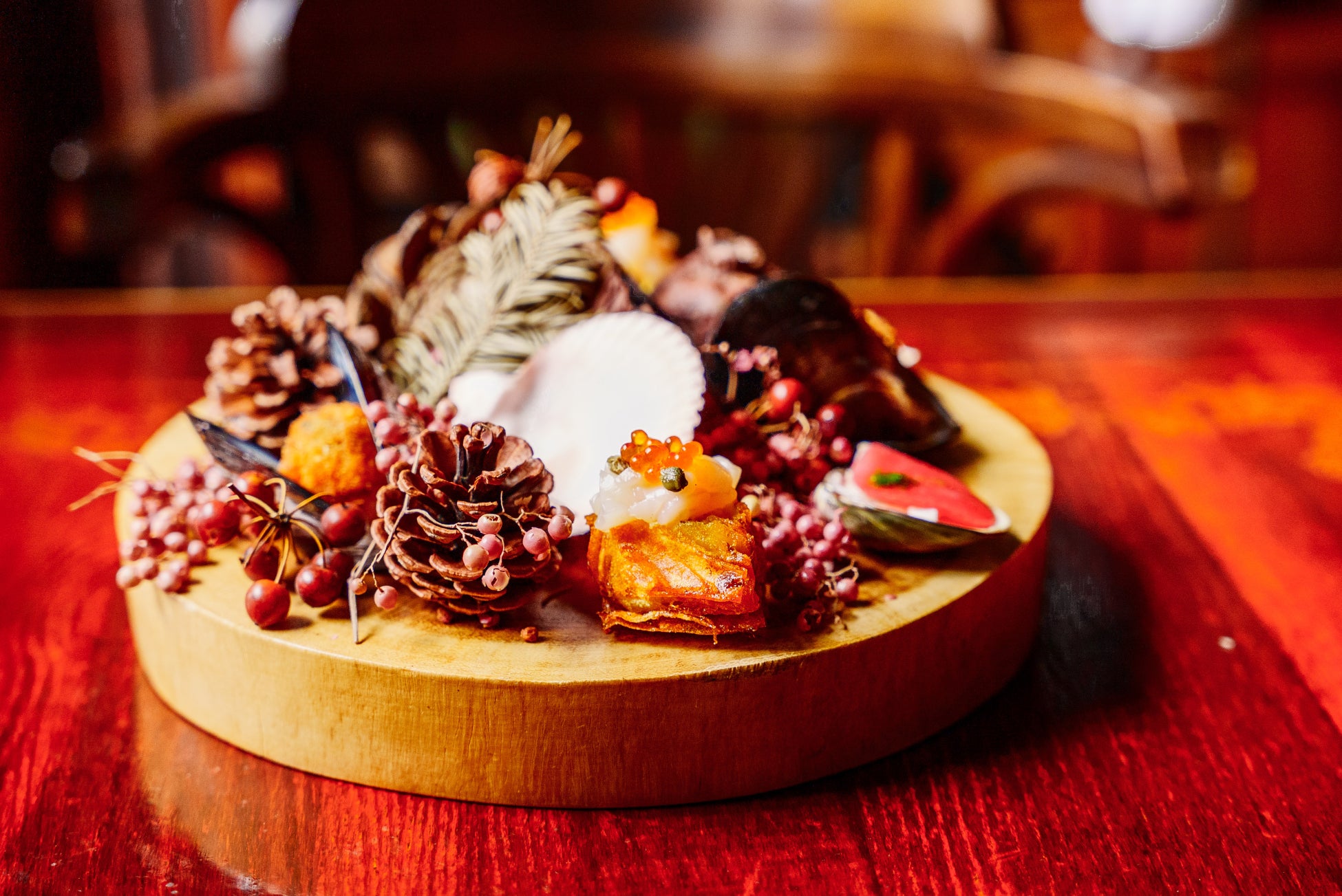 今年のクリスマスコースは、ALMA名物の「貝のアミューズメント」クリスマスバージョンから始まり、贅沢なA5ランクの仙台牛の炭火焼きをメインにご用意しております。思い出に残る素敵なクリスマスを、ぜひALMAでお楽しみください。