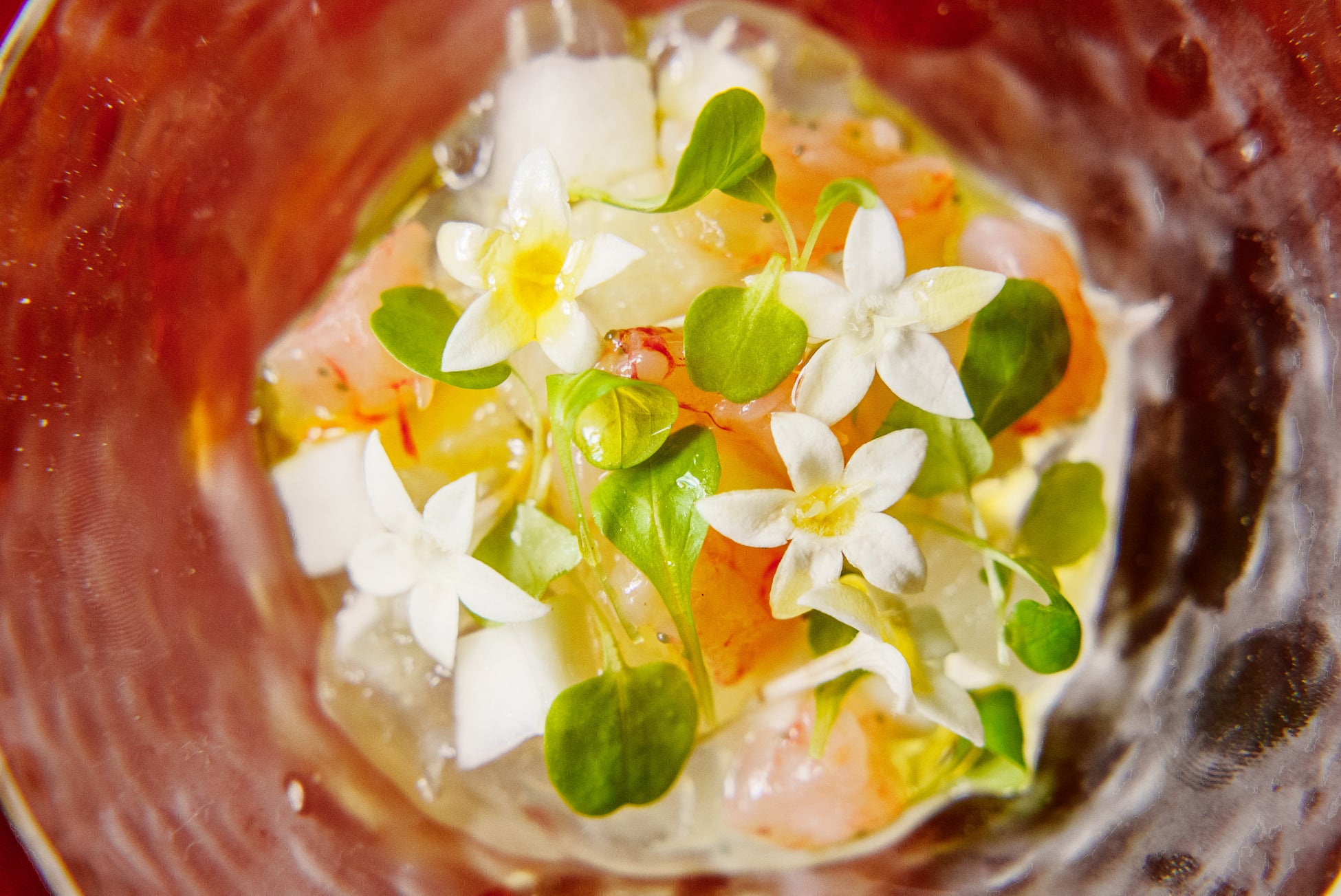 爽やかな魚介と野菜のジュレでコースの始まりを。