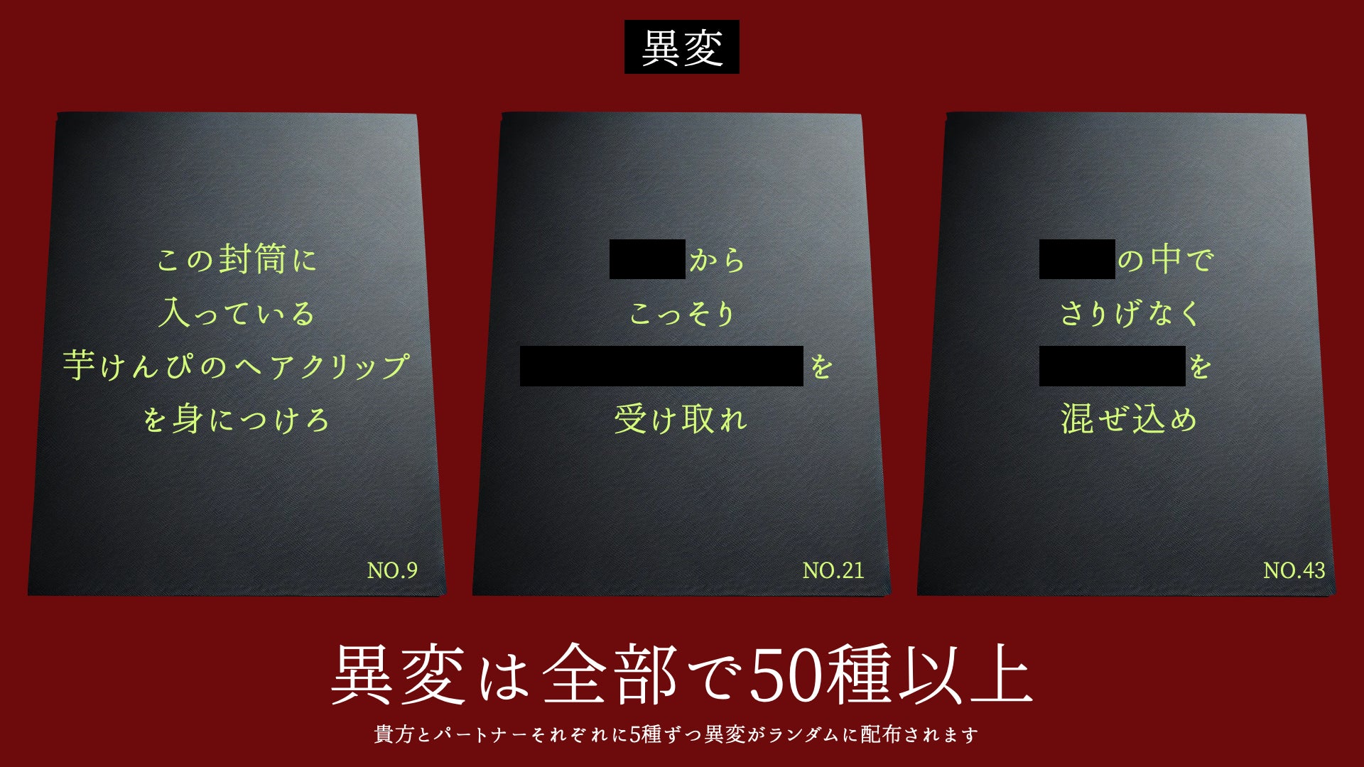 一緒に入店した相手も貴方に次々と「異変」を仕掛けてきます。相手が繰り出す些細な違和感に目を見張りながら、こちらも異変を仕掛けていきましょう。