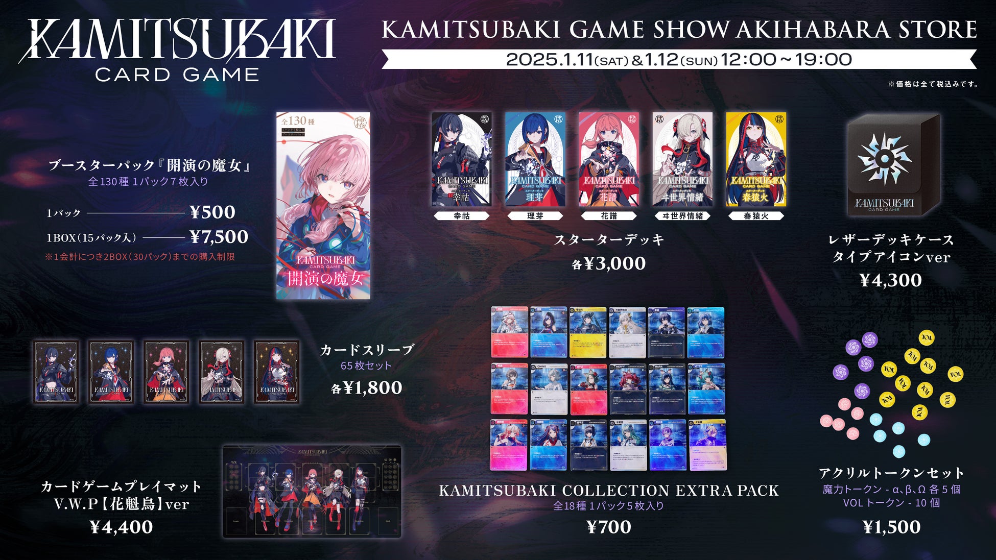 「KAMITSUBAKI GAME SHOW AKIHABARA」秋葉原・ラジオ会館で開催決定!TCG「KAMITSUBAKI CARD GAME」のティーチングイベントや「神椿市建設中。REGENERATE」「神椿市協奏中。」の試遊会も実施!