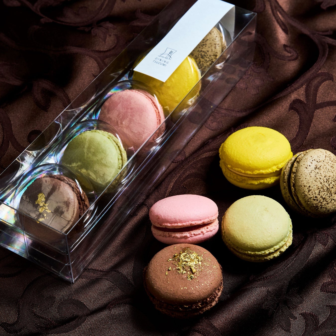 「能登」をテーマにした「珠洲の塩」は、石川県・能登半島の最北端にある珠洲市で500年以上前から受け継がれる日本を代表する伝統製塩です。甘味にほのかに感じられる塩味が楽しい、ひと味違ったマカロンで、金沢金箔を華やかに纏わせました。「加賀棒茶」は香ばしいお茶の香りとまろやかな味わいを楽しめます。王道の「ピスタチオ」は、濃厚な風味に深いコクを表現し、ピスタチオ本来の味をしっかりと感じていただけます。その他、柑橘の爽やかな香りが駆け抜ける「シトロン」や、美しい色合いで甘酸っぱさが後をひく「カシス」が仲間入りしました。